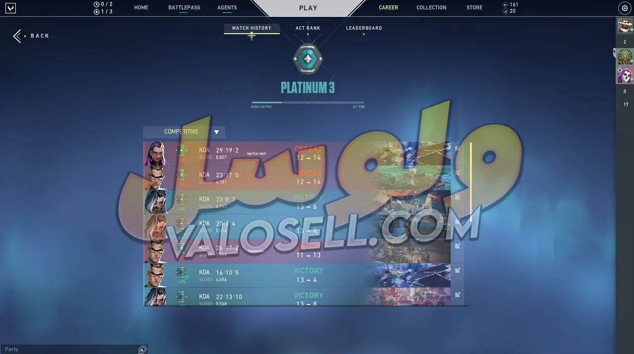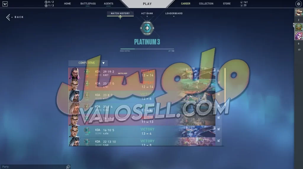 اکانت ولورانت رنک Platinum 3 کد 2692
