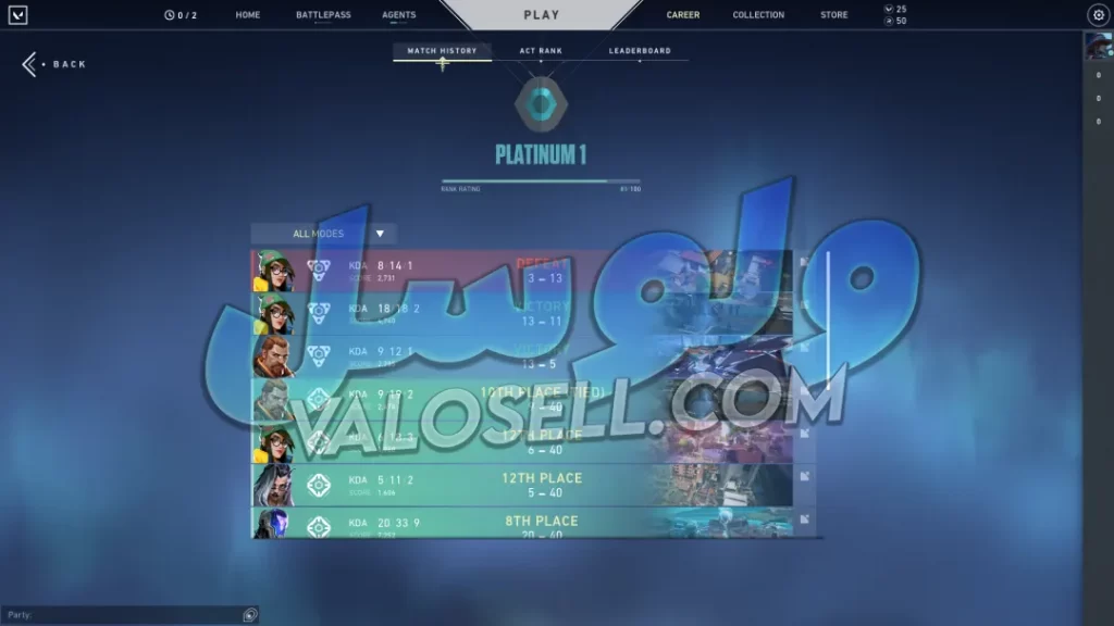 اکانت ولورانت رنک Platinum 1 کد 2713