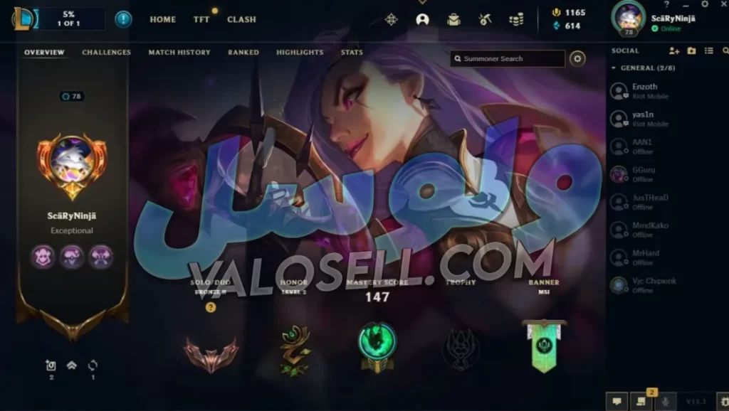 به همراه اکانت لیگ با کلی اسکین که به ارزش 300 – 400 ت میباشد