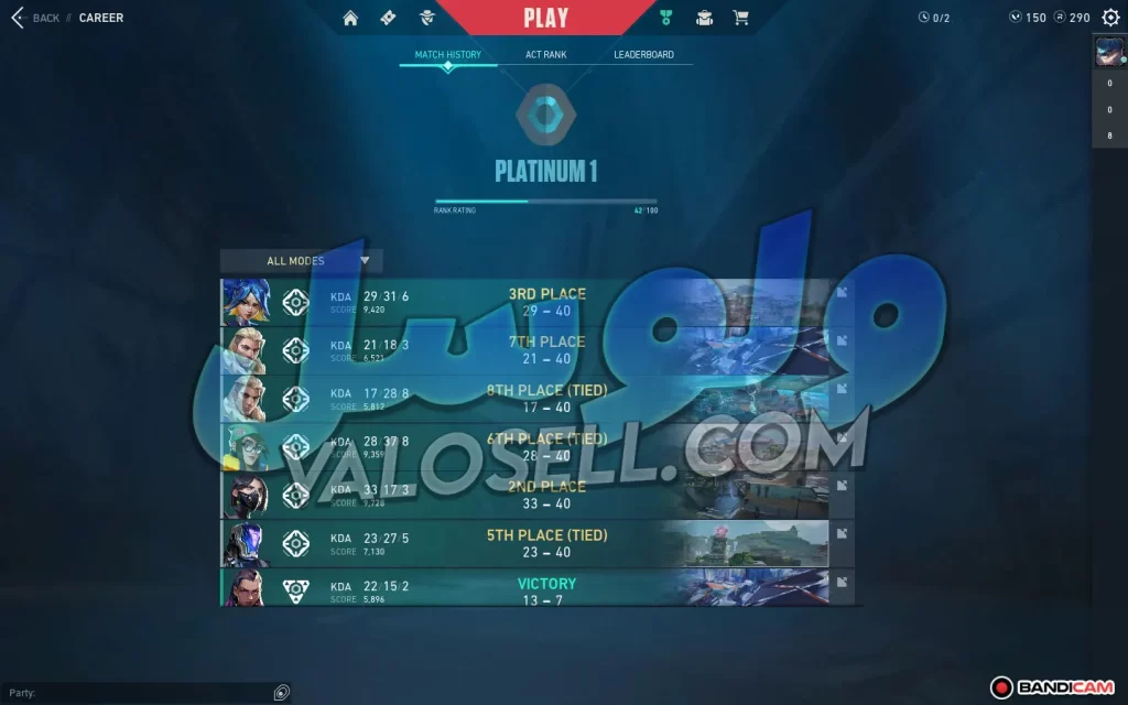 اکانت ولورانت رنک Platinum 1 کد 3006