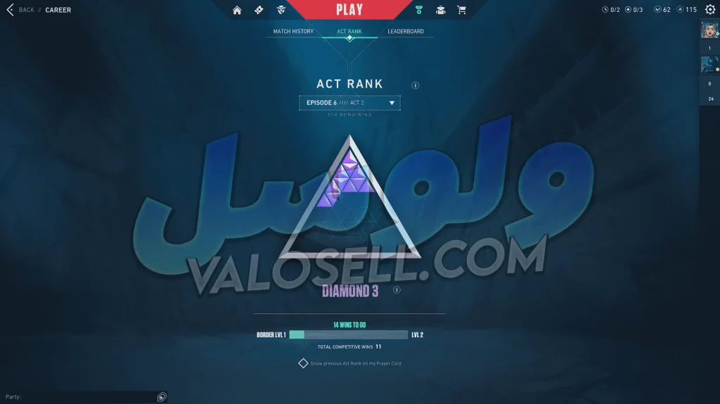 اکانت ولورانت رنک Diamond 3 کد 5920