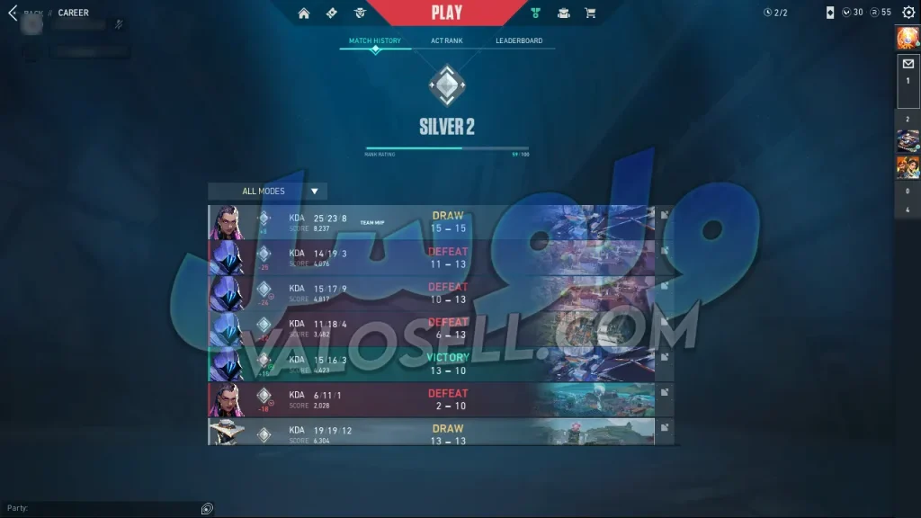 خانه » آرشیو محصولات » اکانت ولورانت رنک Silver 2 کد 3136
