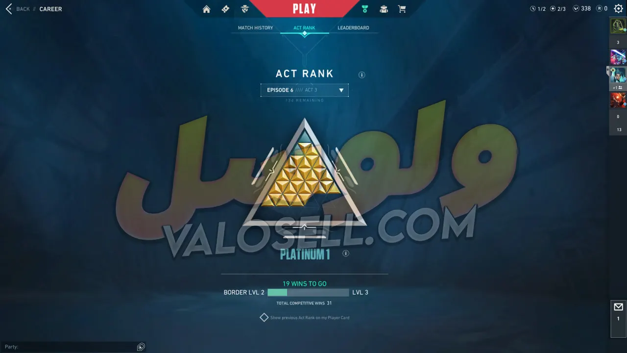 اکانت ولورانت رنک Platinum 1 کد 3344