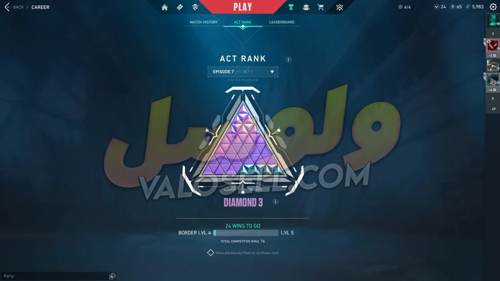 اکانت ولورانت رنک Diamond 3 کد 5920