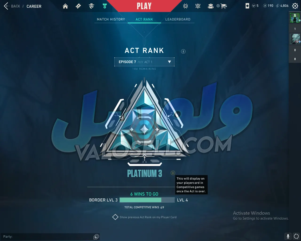 اکانت ولورانت رنک Platinum 1 کد 5949