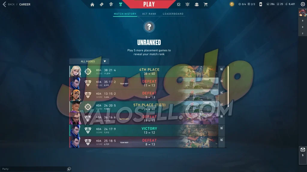 اکانت ولورانت رنک Platinum 3 کد 5927