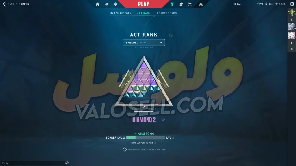 اکانت ولورانت رنک Diamond 3 کد 5920