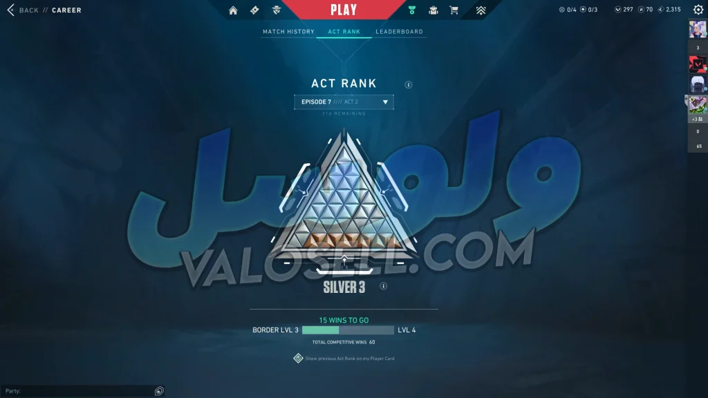 اکانت ولورانت رنک Bronze 3 کد 5915