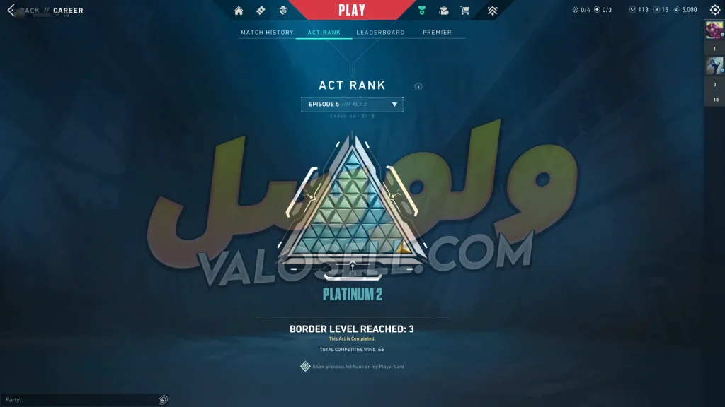 اکانت ولورانت رنک Platinum 3 کد 5919