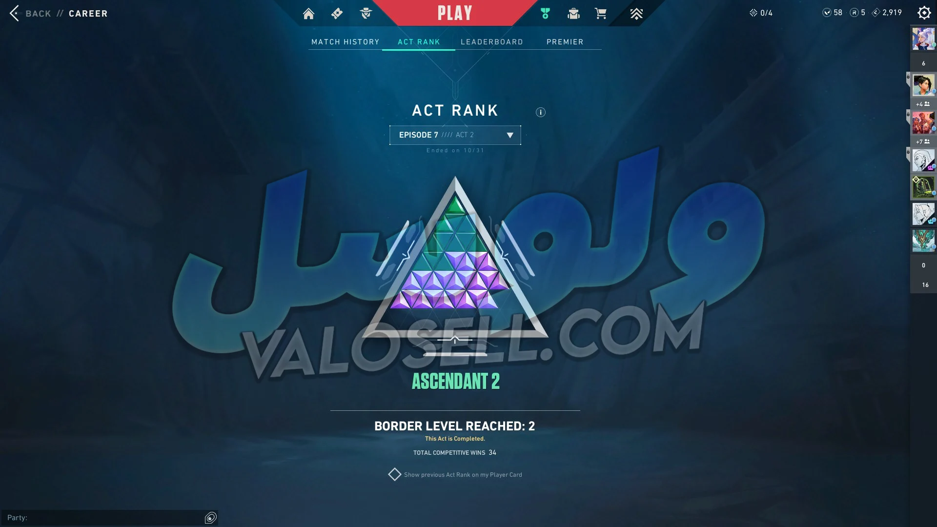اکانت ولورانت رنک Platinum 2 کد 5976