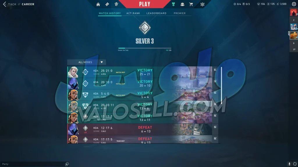 اکانت ولورانت رنک Silver 3 کد 3870