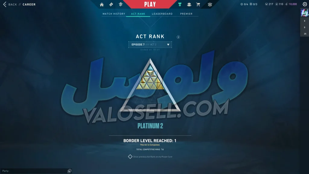 اکانت ولورانت رنک Platinum 1 کد 3886
