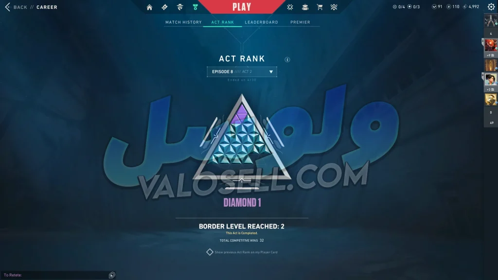 اکانت ولورانت رنک Diamond 3 کد 5920