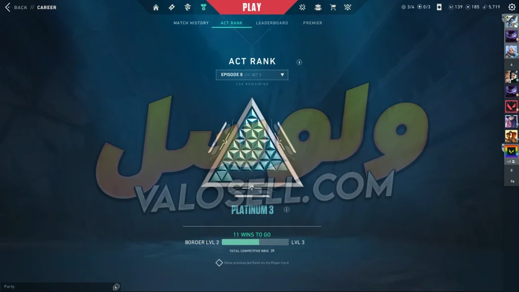 اکانت ولورانت رنک Platinum 3 کد 5919