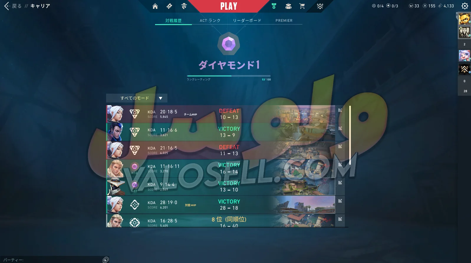 اکانت ولورانت رنک Diamond 1 کد 4962