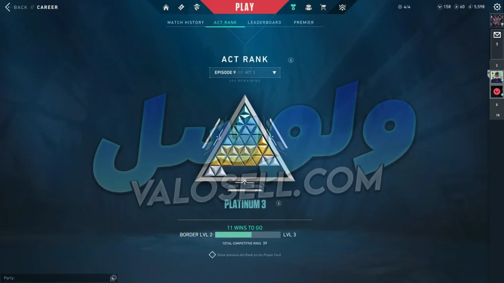 اکانت ولورانت رنک Platinum 2 کد 5935
