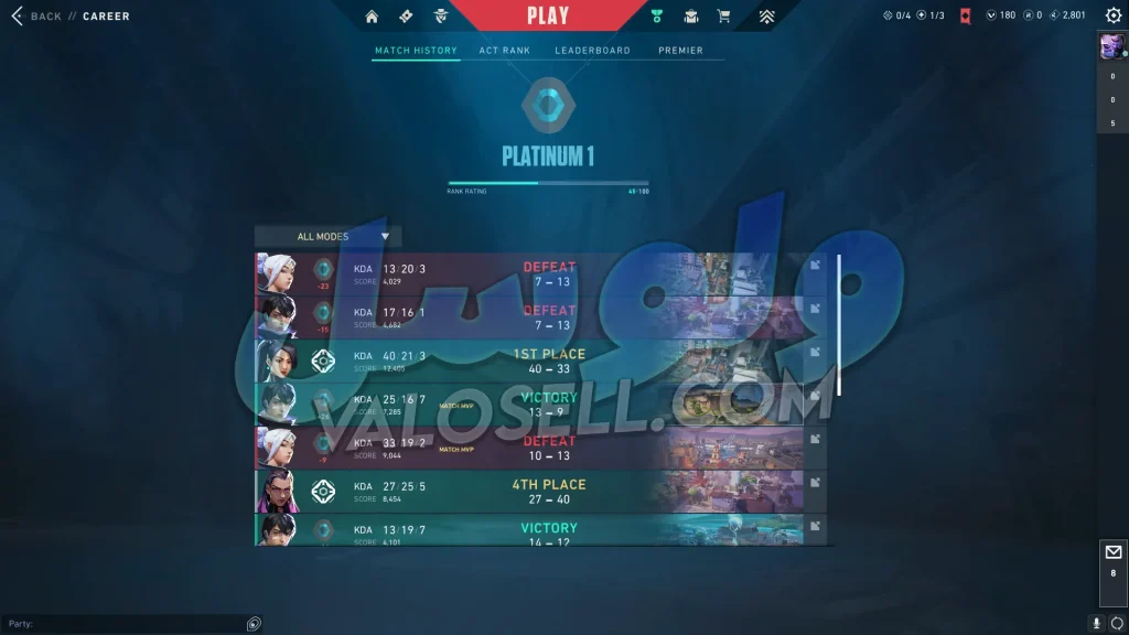 اکانت ولورانت رنک Platinum 2 کد 5935