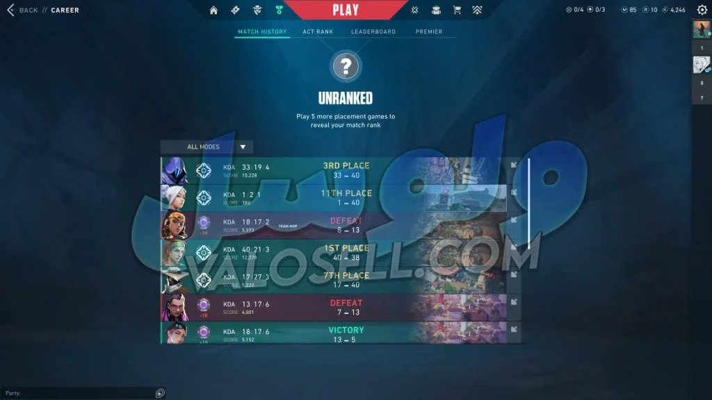اکانت ولورانت رنک Bronze 3 کد 5946
