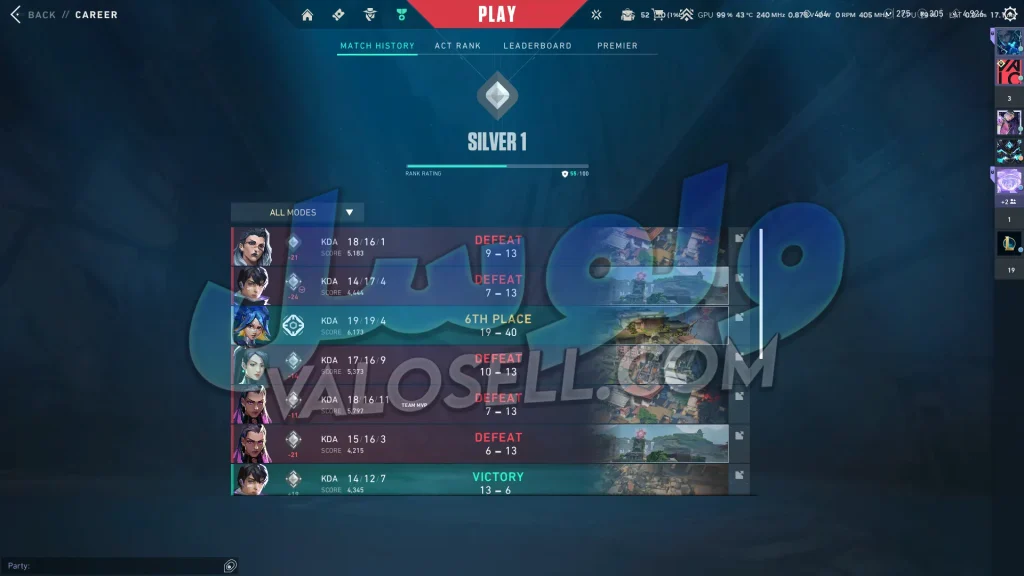 اکانت ولورانت رنک Diamond 1 کد 5941