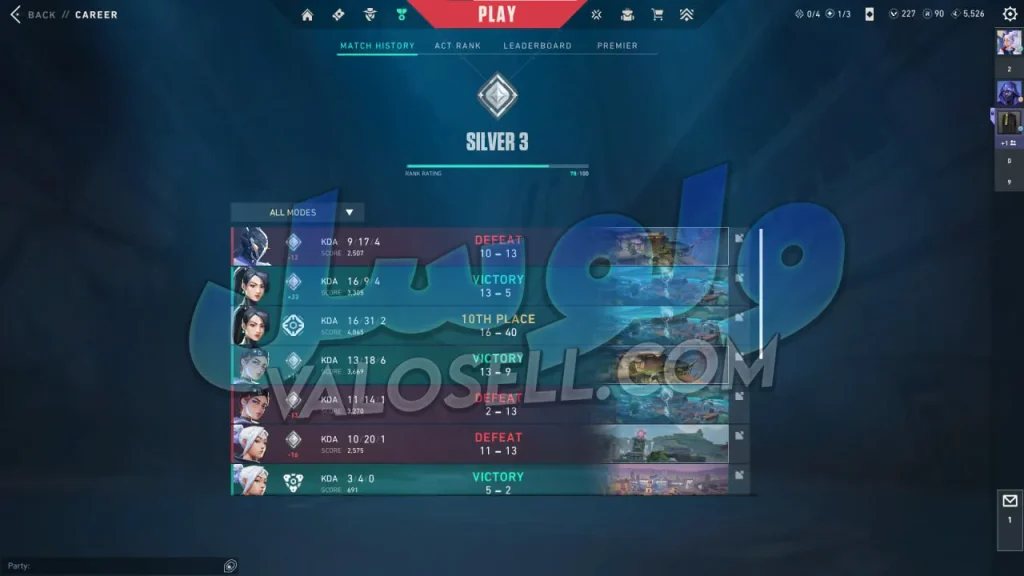 اکانت ولورانت رنک Platinum 3 کد 5911
