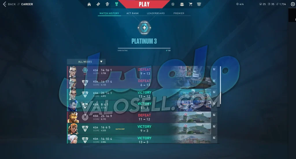 اکانت ولورانت رنک Platinum 3 کد 5359
