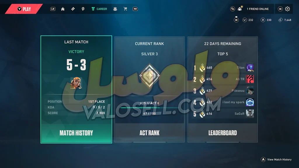 اکانت ولورانت رنک Gold 3 کد 5847