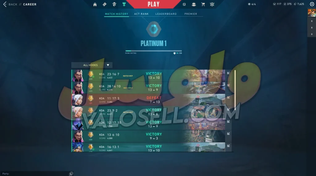 اکانت ولورانت رنک Platinum 1 کد 5761
