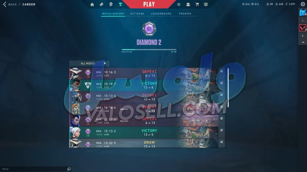 خانه » آرشیو محصولات » اکانت ولورانت رنک Diamond 2 کد 5578