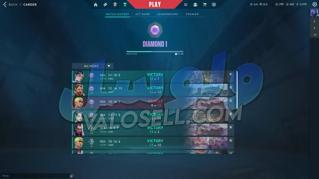 اکانت ولورانت رنک Diamond 3 کد 5920