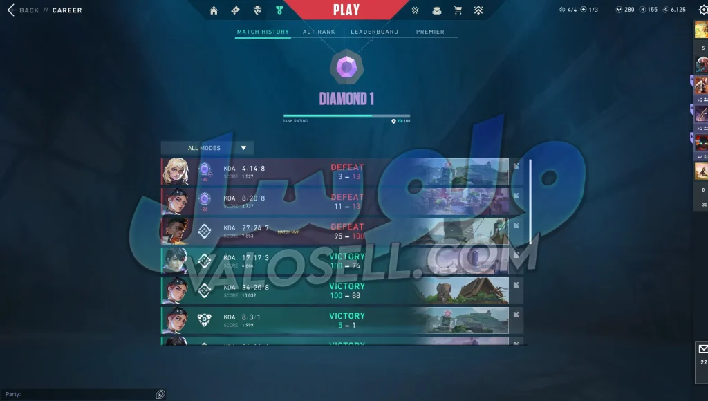 اکانت ولورانت رنک Diamond 3 کد 5920